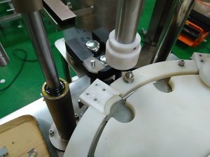 Bu bölüm tıkacı almak ve bir şişeye yerleştirmek için manipülatör kullanır. Daha sonra manipülatör bir kapak emer ve şişeye koyulur.